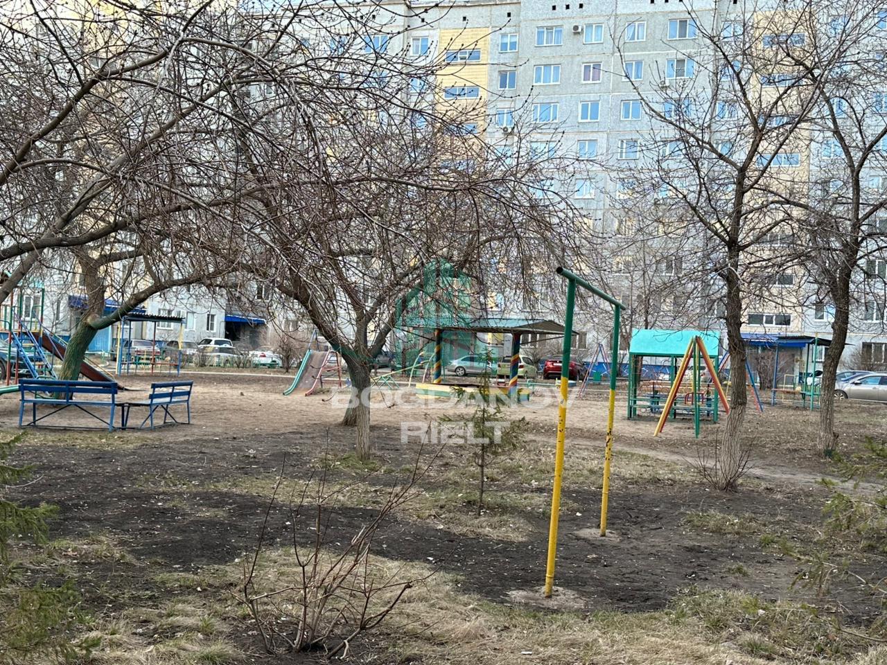 Во дворе дома современная детская площадка.